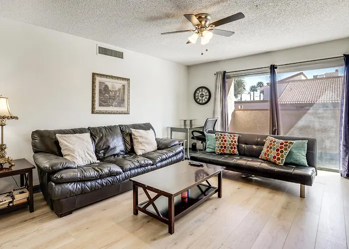 To enjoy your vacation in Las Vegas, stay at the spacious 93 m² Wfh-Friendly Las Vegas Condo 2 Mi To Strip!, which is 2.3 km from the National Atomic Testing Museum and approximately a 10-minute drive from Planet Hollywood Resort & Casino|the Planet Hollywood Resort & Casino. Staying in the 2-bedroom apartment, nestled right around the corner from the Pinball Hall of Fame, guests can relax on a patio.